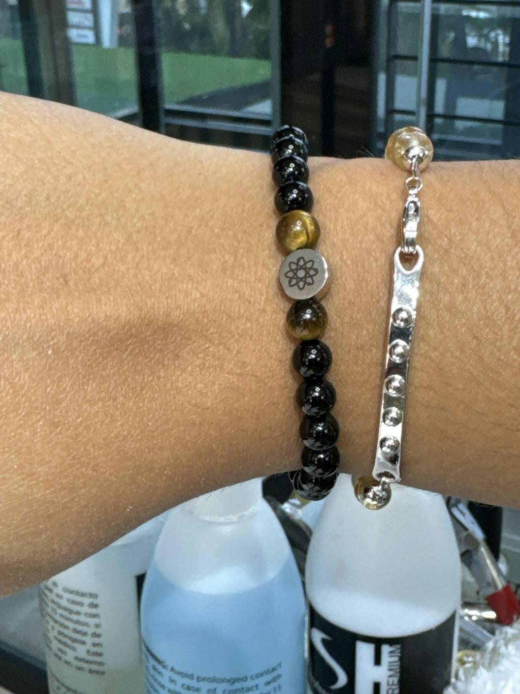 Spiritual bead bracelet black agate and tiger's eye
